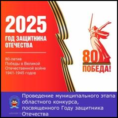 Проведение муниципального этапа областного конкурса, посвященного Году защитника Отечества С 05.11.2025 по 11.11.2025 в Ростовской области будет проходить муниципальный этап областного конкурса, проводимого по технологиям ЕГЭ по вопросам, посвященным Году защитника ...