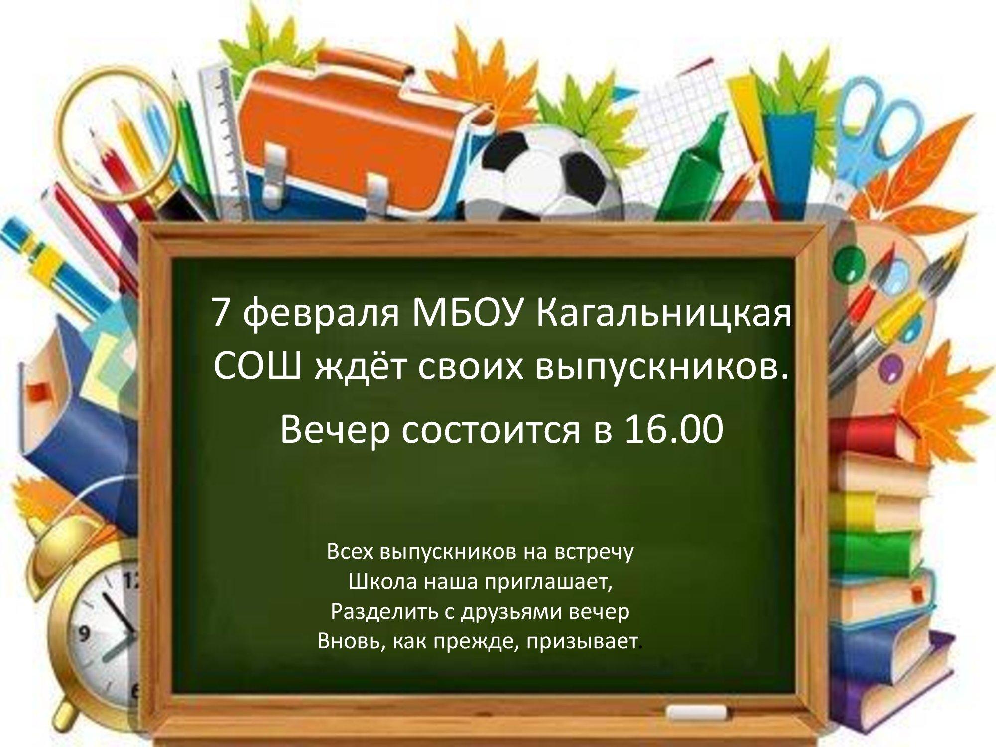 7 февраля МБОУ Кагальницкая СОШ приглашает выпускников на встречу.Начало в 16.00